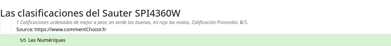 Sauter SPI4360W analisis: Solo hemos encontrado una prueba sobre este producto, por lo que es difícil dar una opinión general y esta calificación de 5/5 no puede ser realmente representativa.