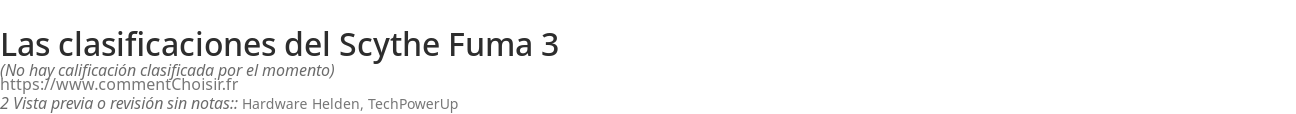 Scythe Fuma 3 analisis: Solo hemos encontrado una prueba sobre este producto, por lo que es difícil dar una opinión general y esta calificación de 0/5 no puede ser realmente representativa.
