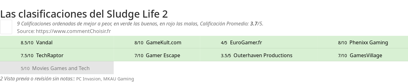 Para una mejor comparación, hemos investigado para usted las ventajas y desventajas de Sludge Life 2 y las notas de datos de los sitios especializados.