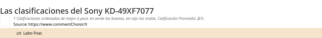 Las calificaciones de los sitios de Internet y las revistas pueden estar sesgadas, al menos con las reseñas de los clientes y los usuarios que compraron Sony KD-49XF7077 en Amazon o Fnac, estamos seguros de que tenemos reseñas reales sobre este producto. (los enlaces a las tiendas son patrocinados)