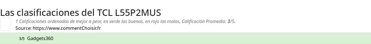 TCL L55P2MUS analisis: Solo hemos encontrado una prueba sobre este producto, por lo que es difícil dar una opinión general y esta calificación de 3/5 no puede ser realmente representativa.