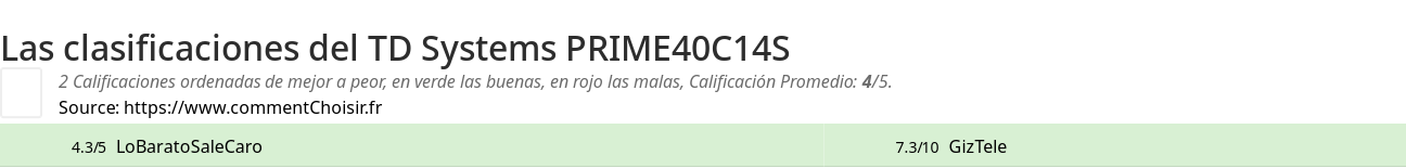 ¿Qué calificación para TD Systems PRIME40C14S ?