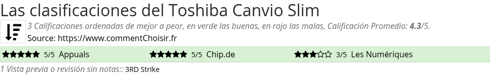 Las calificaciones de los sitios de Internet y las revistas pueden estar sesgadas, al menos con las reseñas de los clientes y los usuarios que compraron Toshiba Canvio Slim en Amazon o Fnac, estamos seguros de que tenemos reseñas reales sobre este producto. (los enlaces a las tiendas son patrocinados)