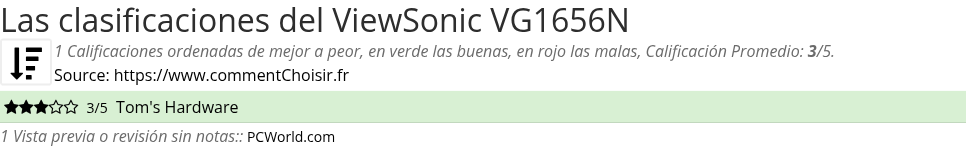 Entre estas pruebas de sitios de Internet y revistas especializadas en Monitores, 1 dieron una calificación y obtenemos una calificación promedio de 3/5 para este producto ViewSonic.