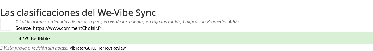 Entre estas pruebas de sitios de Internet y revistas especializadas en Juguete sexual, 1 dieron una calificación y obtenemos una calificación promedio de 4/5 para este producto We-Vibe.