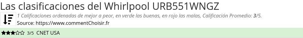 Las calificaciones de los sitios de Internet y las revistas pueden estar sesgadas, al menos con las reseñas de los clientes y los usuarios que compraron Whirlpool URB551WNGZ en Amazon o Fnac, estamos seguros de que tenemos reseñas reales sobre este producto. (los enlaces a las tiendas son patrocinados)