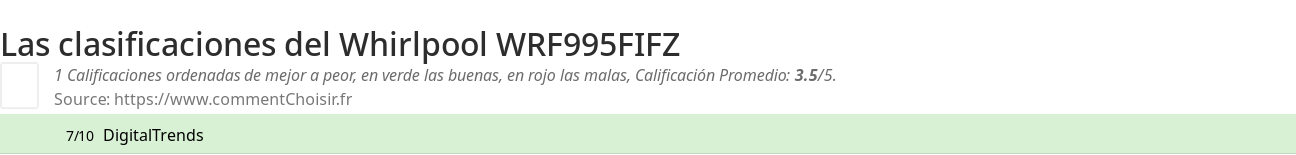 - 1 reseñas y opiniones con 1 valoraciones para el Whirlpool WRF995FIFZ