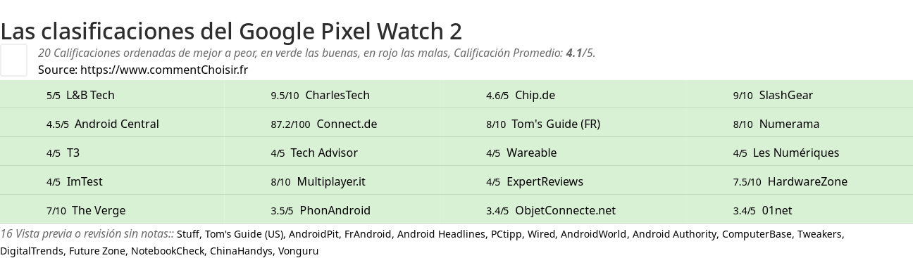 Para una mejor comparación, hemos investigado para usted las ventajas y desventajas de Google Pixel Watch 2 y las notas de datos de los sitios especializados.