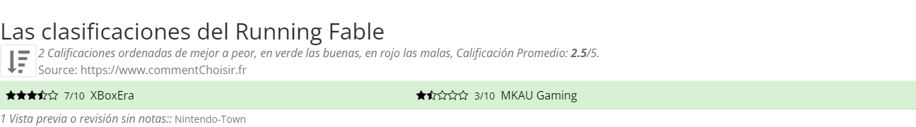 Entre estas pruebas de sitios de Internet y revistas especializadas en Videojuego, 4 dieron una calificación y obtenemos una calificación promedio de 2.6/5 para este producto Running Fable.