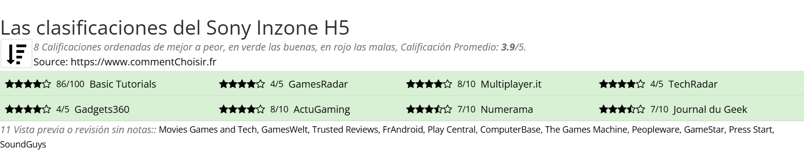 Las calificaciones de los sitios de Internet y las revistas pueden estar sesgadas, al menos con las reseñas de los clientes y los usuarios que compraron Sony Inzone H5 en Amazon o Fnac, estamos seguros de que tenemos reseñas reales sobre este producto. (los enlaces a las tiendas son patrocinados)