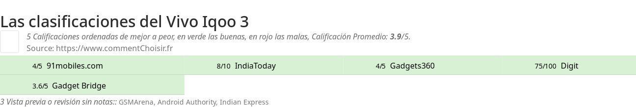 Las calificaciones de los sitios de Internet y las revistas pueden estar sesgadas, al menos con las reseñas de los clientes y los usuarios que compraron Vivo Iqoo 3 en Amazon o Fnac, estamos seguros de que tenemos reseñas reales sobre este producto. (los enlaces a las tiendas son patrocinados)