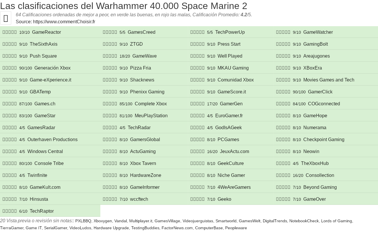 ¿Qué calificación para Warhammer 40.000 Space Marine 2 ?