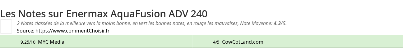Les notes des sites et magazines internet peuvent etre peut-etre biaisés, au moins avec les avis client et des utilisateurs qui ont acheté Enermax AquaFusion ADV 240 sur amazon ou la fnac, on est sur d'avoir de vrais critiques sur ce produit. (les liens vers les magasins sont sponsorisés).