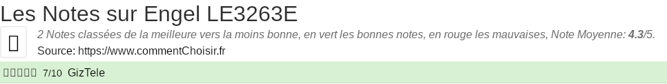 Les notes des sites et magazines internet peuvent etre peut-etre biaisés, au moins avec les avis client et des utilisateurs qui ont acheté Engel LE3263E sur amazon ou la fnac, on est sur d'avoir de vrais critiques sur ce produit. (les liens vers les magasins sont sponsorisés).