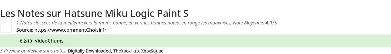 Pour mieux comparer, nous avons cherché pour vous les avantages et inconvénients de Hatsune Miku Logic Paint S et les notes données par les sites spécialisés.