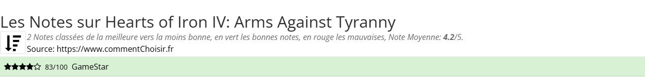 Quelle note pour Hearts of Iron IV: Arms Against Tyranny ?