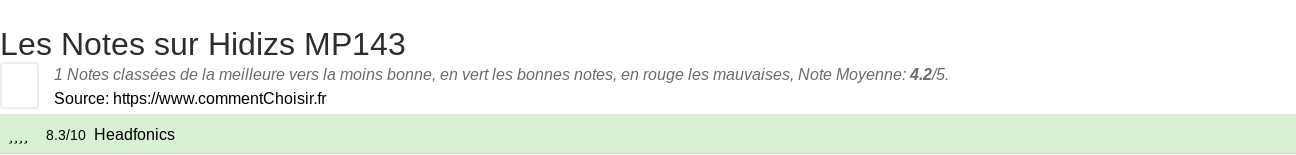 Les Notes sur Hidizs MP143