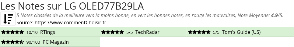 Pour mieux comparer, nous avons cherché pour vous les avantages et inconvénients de LG OLED77B29LA et les notes données par les sites spécialisés.