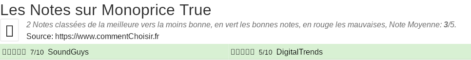Voici tous les 2 avis et les tests que nous avons trouvé sur le Jeux Monoprice True avec les 2 notes et les commentaires des testeurs dans leur review.