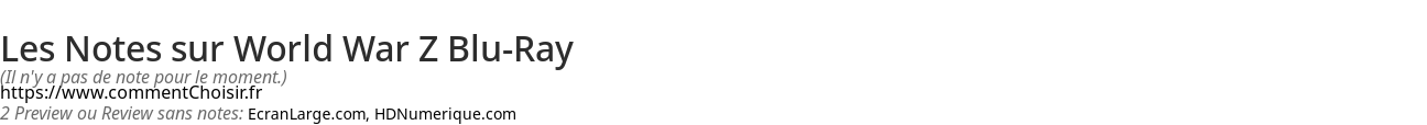 Les notes des sites et magazines internet peuvent etre peut-etre biaisés, au moins avec les avis client et des utilisateurs qui ont acheté World War Z Blu-Ray sur amazon ou la fnac, on est sur d'avoir de vrais critiques sur ce produit. (les liens vers les magasins sont sponsorisés).