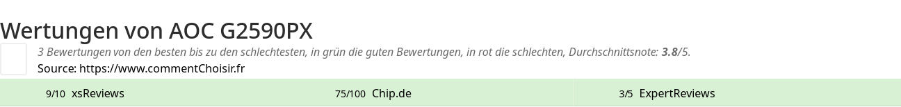 Hier sind alle 3 tests und Bewertungen zu Monitore AOC G2590PX mit den 3 Bewertungen und Kommentaren der Tester in ihrem Test.