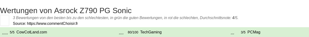Hier sind alle 3 tests und Bewertungen zu Systemkomponenten Asrock Z790 PG Sonic mit den 3 Bewertungen und Kommentaren der Tester in ihrem Test.