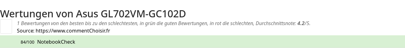 - 1 Testberichte und Meinungen mit 1 Bewertungen zum Asus GL702VM-GC102D