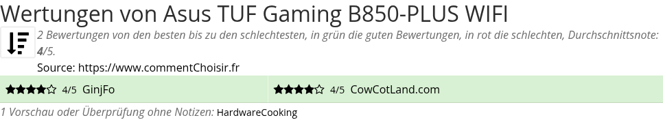 Asus TUF Gaming B850-PLUS WIFI im Test: 3 Reviews und 2 Bewertungen — Durchschnitt: 4/5