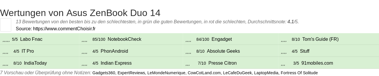 Asus ZenBook Duo 14 test : Mit einer durchschnittlichen Bewertung von 4.1/5 können Sie Asus ZenBook Duo 14 mit geschlossenen Augen (oder fast) kaufen. Die Meinungen der Tester scheinen einhellig zu sein!