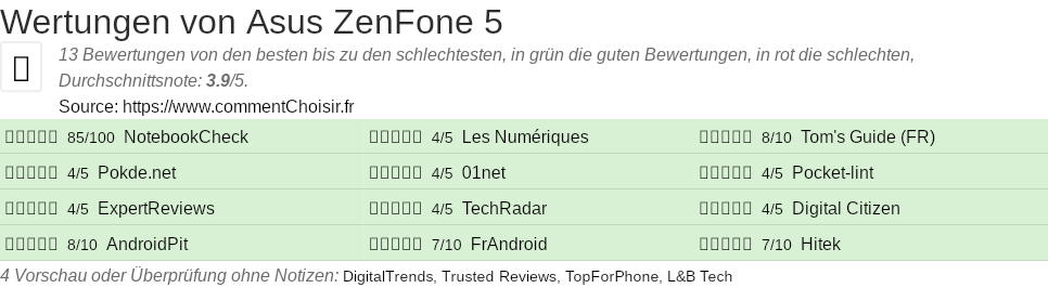 Hier sind alle 17 tests und Bewertungen zu Smartphones Asus ZenFone 5 mit den 13 Bewertungen und Kommentaren der Tester in ihrem Test.