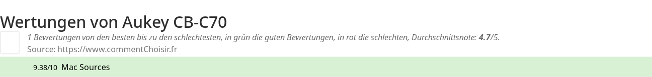 - 1 Testberichte und Meinungen mit 1 Bewertungen zum Aukey CB-C70