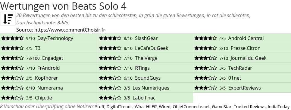 | 3/5 Kopfhörer | 6/10 SoundGuys | 3/5 01net |