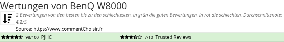 Hier sind alle 2 tests und Bewertungen zu Beamer BenQ W8000 mit den 2 Bewertungen und Kommentaren der Tester in ihrem Test.
