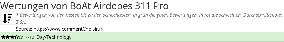 - 1 Testberichte und Meinungen mit 1 Bewertungen zum BoAt Airdopes 311 Pro