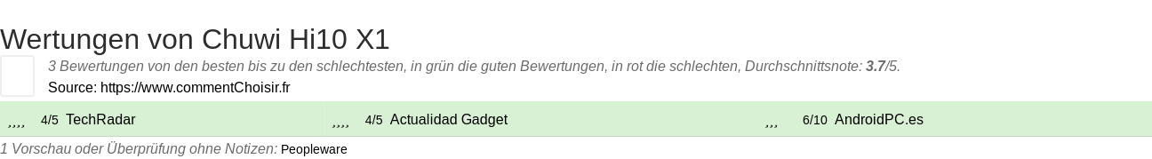 Hier sind alle 4 tests und Bewertungen zu Notebooks Chuwi Hi10 X1 mit den 3 Bewertungen und Kommentaren der Tester in ihrem Test.