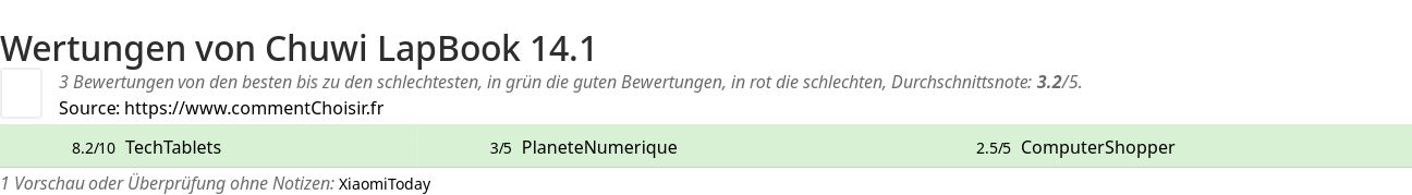 Hier sind alle 5 tests und Bewertungen zu Notebooks Chuwi LapBook 14.1 mit den 3 Bewertungen und Kommentaren der Tester in ihrem Test.