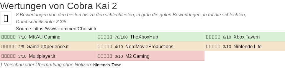 Hier sind alle 9 tests und Bewertungen zu Videospiele Cobra Kai 2 mit den 8 Bewertungen und Kommentaren der Tester in ihrem Test.