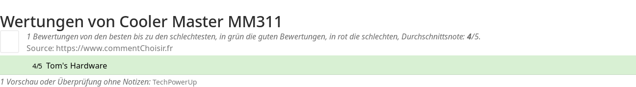 - 2 Testberichte und Meinungen mit 1 Bewertungen zum Cooler Master MM311