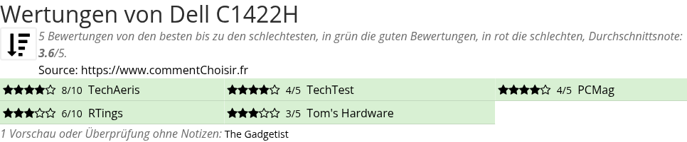 Die Bewertungen von Websites und Internetmagazinen können voreingenommen sein, zumindest bei Kundenrezensionen und Benutzern, die Dell C1422H auf Amazon oder Fnac gekauft haben, sind wir sicher, dass wir echte Bewertungen zu diesem Produkt haben.