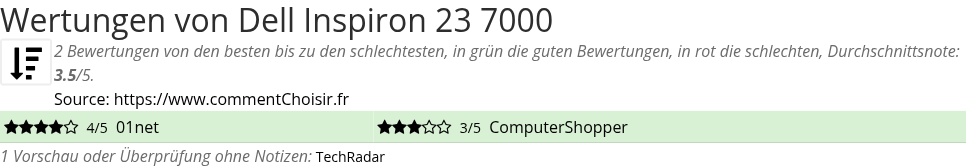 Hier sind alle 3 tests und Bewertungen zu Notebooks Dell Inspiron 23 7000 mit den 2 Bewertungen und Kommentaren der Tester in ihrem Test.