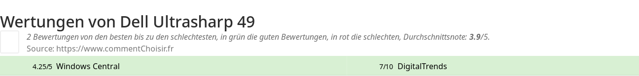 Hier sind alle 2 tests und Bewertungen zu Notebooks Dell Ultrasharp 49 mit den 2 Bewertungen und Kommentaren der Tester in ihrem Test.