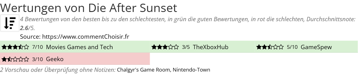 Die After Sunset im Test: 6 Reviews und 4 Bewertungen — Durchschnitt: 2.6/5