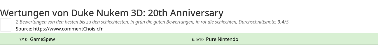 Hier sind alle 2 tests und Bewertungen zu Videospiele Duke Nukem 3D: 20th Anniversary mit den 2 Bewertungen und Kommentaren der Tester in ihrem Test.