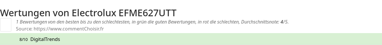 Electrolux EFME627UTT im Test: 1 Reviews und 1 Bewertungen — Durchschnitt: 4/5