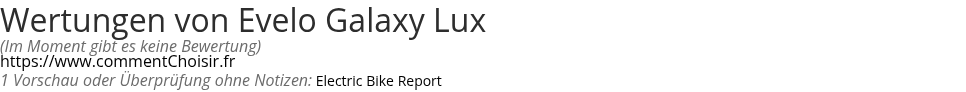 - 1 Testberichte und Meinungen mit 0 Bewertungen zum Evelo Galaxy Lux