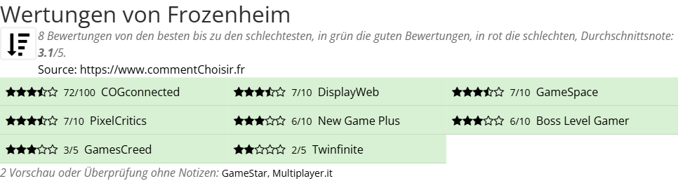 Frozenheim im Test: 11 Reviews und 8 Bewertungen — Durchschnitt: 3.1/5