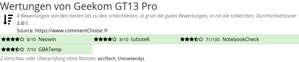 Hier sind alle 6 tests und Bewertungen zu Desktop Geekom GT13 Pro mit den 4 Bewertungen und Kommentaren der Tester in ihrem Test.