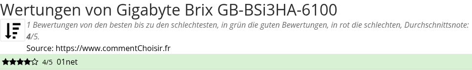 Gigabyte Brix GB-BSi3HA-6100 test : Wir haben nur eine Rezension zu diesem Produkt gefunden, daher klingt es schwierig, einen globalen Ratschlag zu geben. Diese durchschnittliche Bewertung von 4/5 ist möglicherweise nicht repräsentativ.