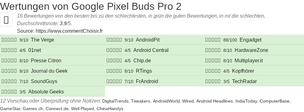 Zum besseren Vergleich haben wir nach den Vor- und Nachteilen von Google Pixel Buds Pro 2 und den Bewertungen spezialisierter Websites gesucht.
