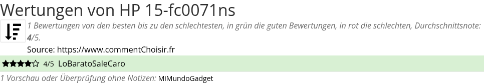 Hier sind alle 2 tests und Bewertungen zu Notebooks HP 15-fc0071ns mit den 1 Bewertungen und Kommentaren der Tester in ihrem Test.